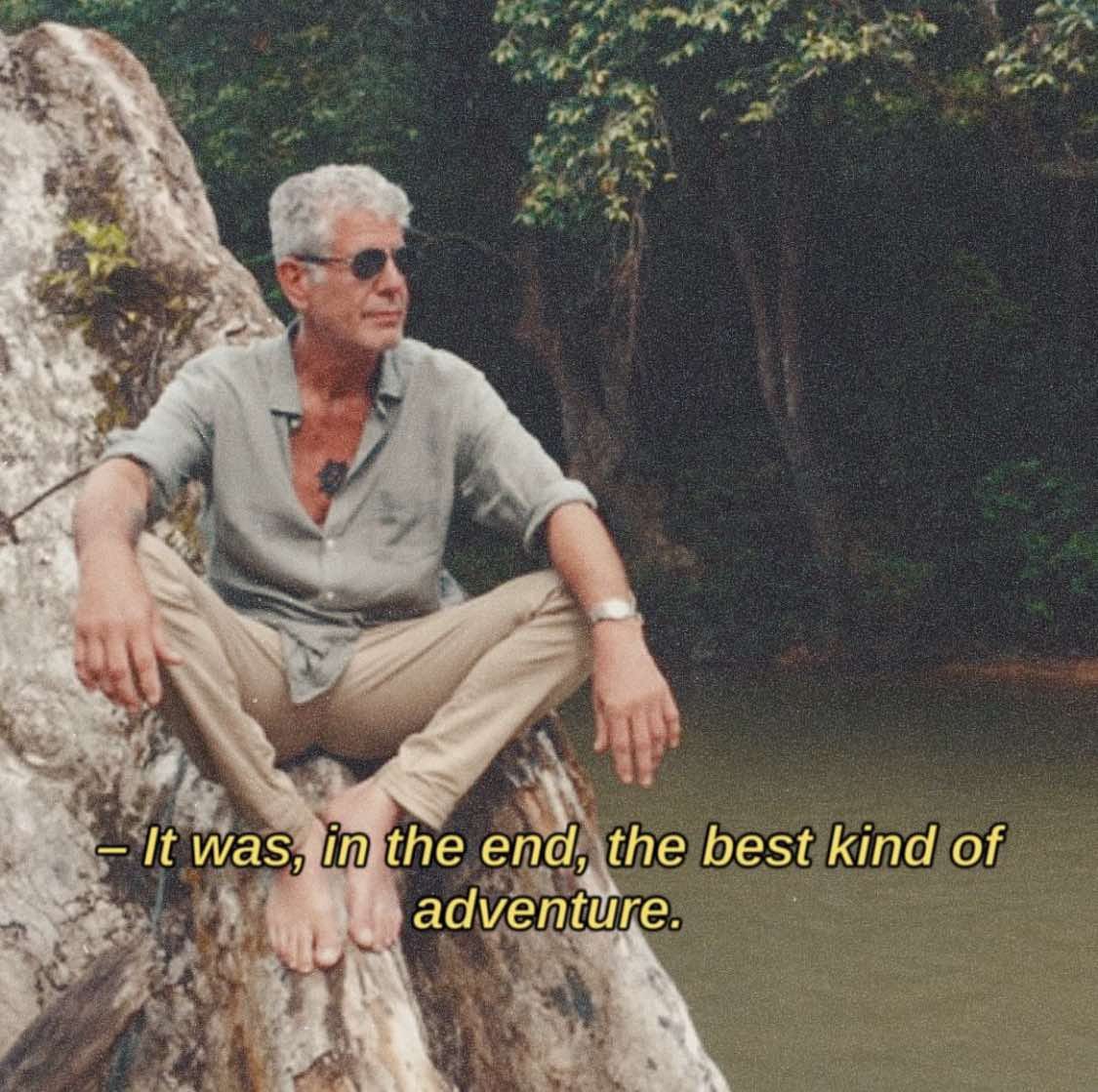 He’s said many beautiful things about travelling and adventure. However, it is in a short clip from the 2021 documentary, Roadrunner: A Film About Anthony Bourdain, where one of his core beliefs is shown in just six words: